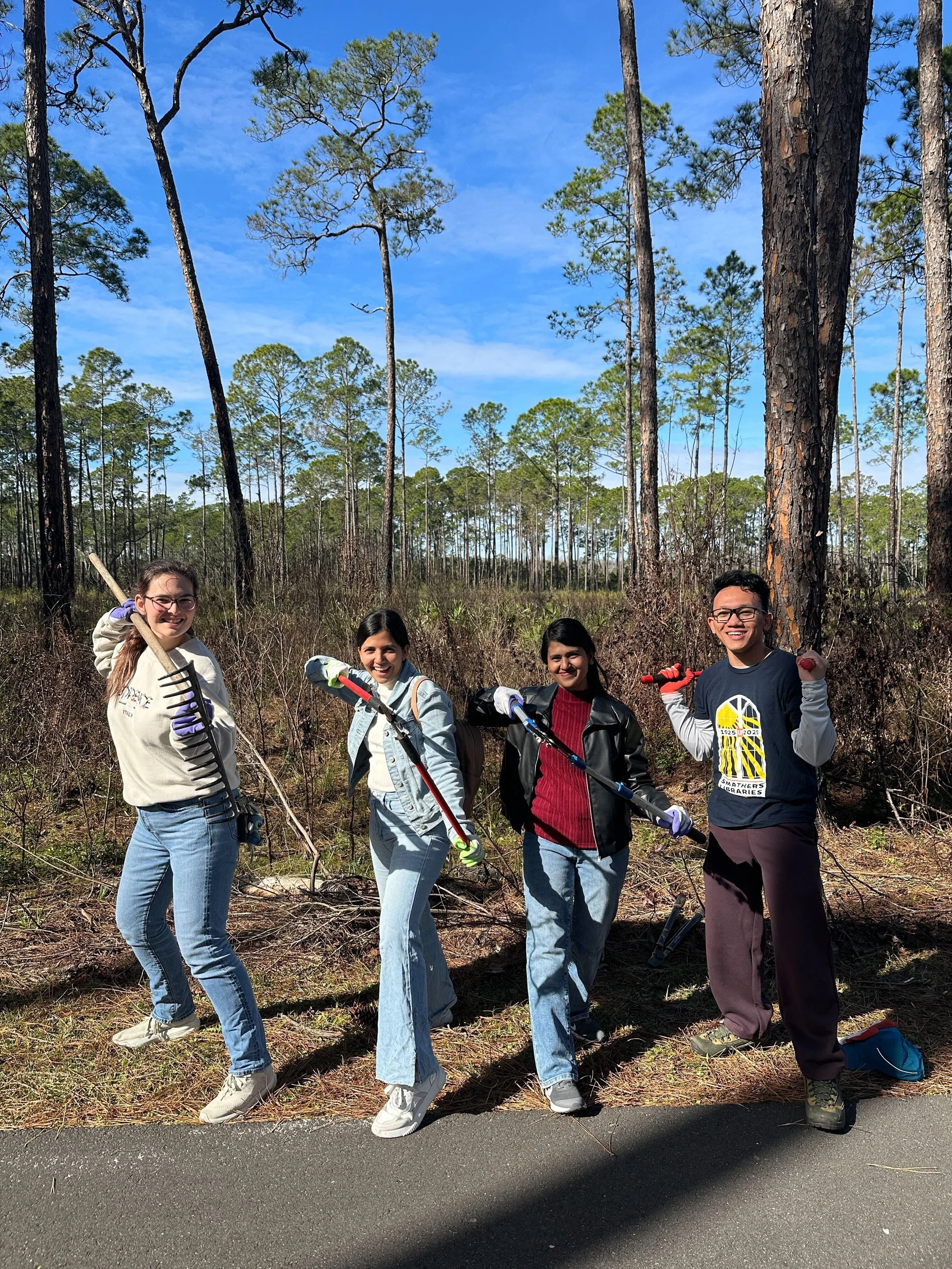 Jan 17, 2026: The fearless Narayanan Lab members join ORCA and the Florida Department of Environmental Protection to remove sweetgum from Paynes Prairie! Avengers, assembled!